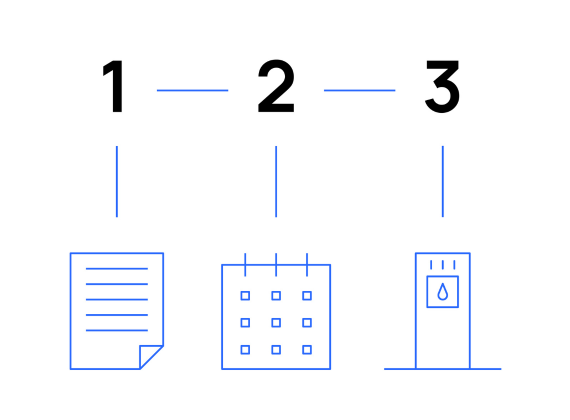2. Termin festlegen: Wir vereinbaren einen Termin für den Wasserspender-Test und stimmen den besten Zeitpunkt für die Installation ab.